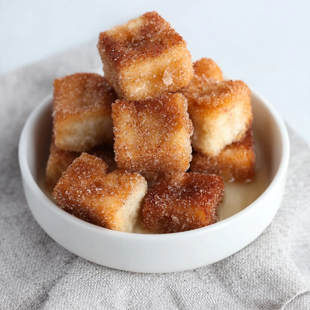 Tasty angel cake churro bites made from soft cake cubes fried until golden and rolled in cinnamon sugar for a quick, fun dessert.