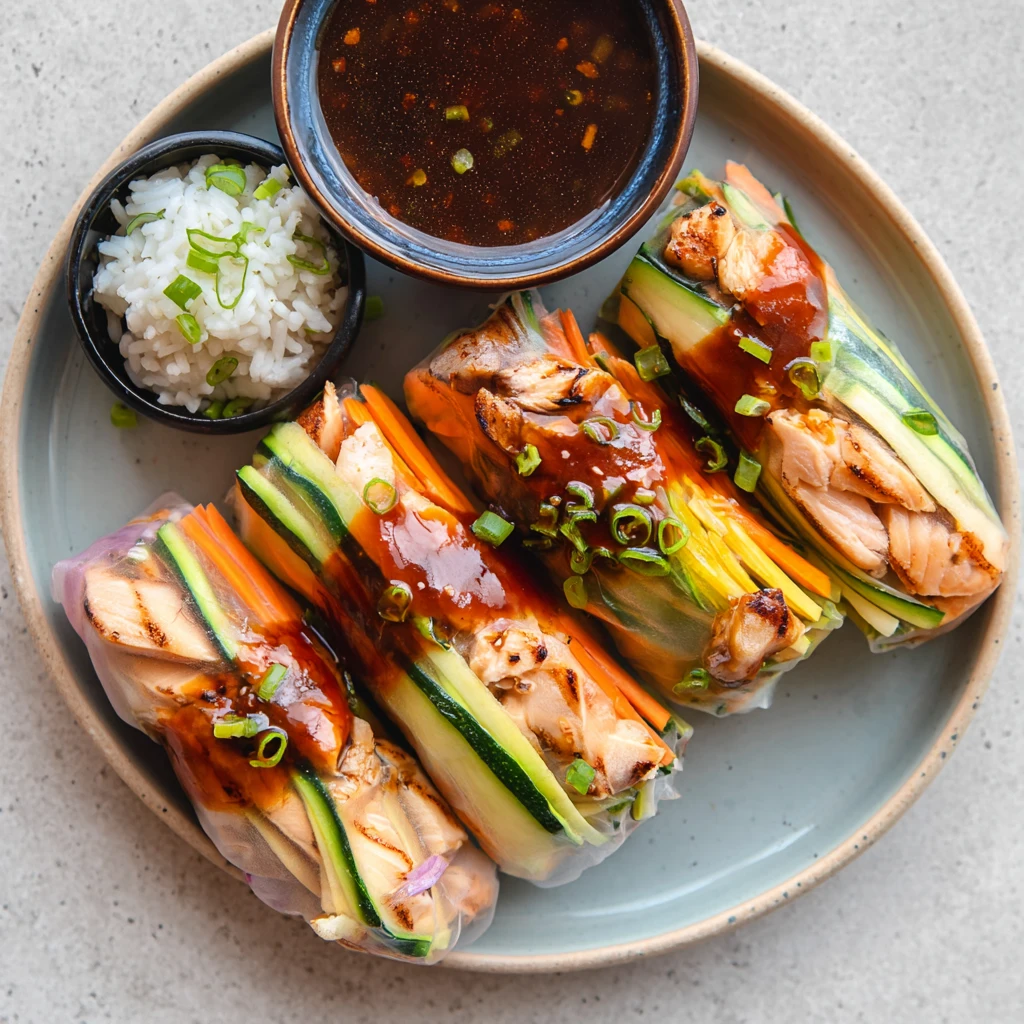 These baked salmon spring rolls deliver flaky baked salmon, crisp vegetables, fresh herbs, and chewy rice paper with a zesty dipping sauce for a light yet satisfying meal.