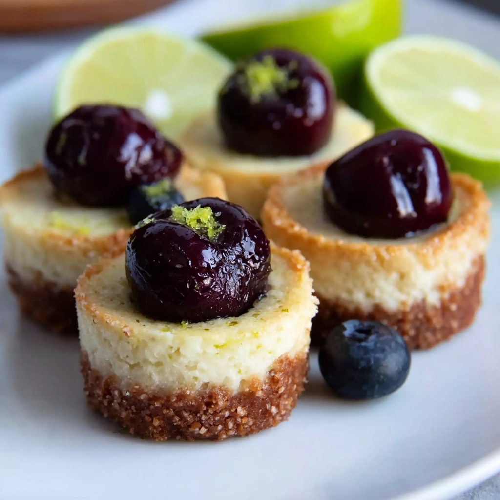 The first time I made cherry lime mini cheesecakes, I didn’t expect them to spark the kind of memory that sticks with you. I wanted something refreshing yet rich, something bright enough for summer but comforting enough to enjoy any time. It started during a weekend visit with friends, when I needed a dessert that traveled well and looked cute without much effort. I remember standing in my kitchen, tasting the cheesecake batter, and noticing how the lime made everything wake up. That balance became the reason these cherry lime mini cheesecakes kept showing up at gatherings. While baking that batch, I kept thinking about the cherry lime sodas I loved as a kid. Those flavors were bold, sweet, and slightly tart, and the moment I roasted the cherries for the topping, that same vibe came rushing back. The scent filled the kitchen, and suddenly the whole dessert felt familiar and new at the same time. As my friends reached for them later that night, each person reacted the same way: first a slow blink, then a little smile, and then the classic question I still hear every time I make them—“Wait, what’s in these?” That’s when I knew these cherry lime mini cheesecakes would stay in my recipe box forever. They combine creamy filling, bright citrus, and soft fruit in a way that feels both playful and grown-up. Even now, when I pull them from the oven, I get that same feeling of anticipation. I think about that first moment, the first bite, and the way simple ingredients turned into something that carried a memory. These cherry lime mini cheesecakes carry a little nostalgia, a lot of flavor, and just enough personality to become your next favorite treat.
