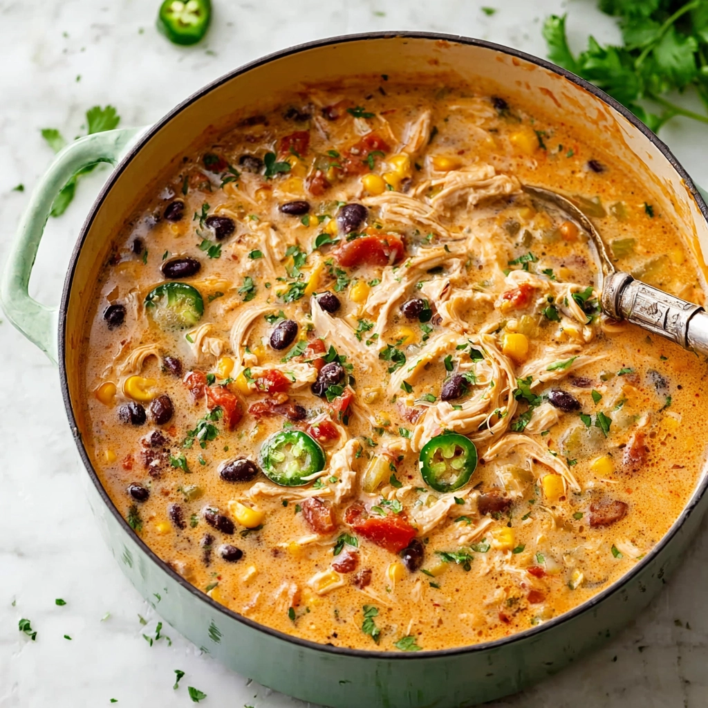 This easy Chicken Enchilada Soup delivers bold flavor, creamy texture, and tender chicken with simple pantry ingredients.