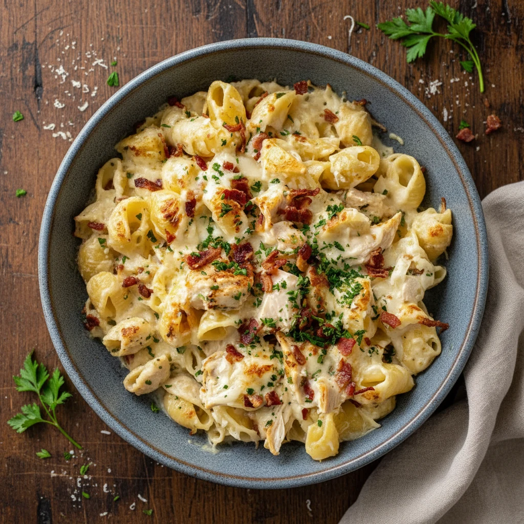 Chicken Pasta Casserole delivers everything you want in a homemade dinner—creamy texture, melted cheese, hearty chicken, and simple preparation. Whether you prepare it with freshly cooked chicken or leftover pieces from another meal, this comforting casserole always satisfies. Add it to your weekly menu and enjoy a reliable family favorite that never disappoints.