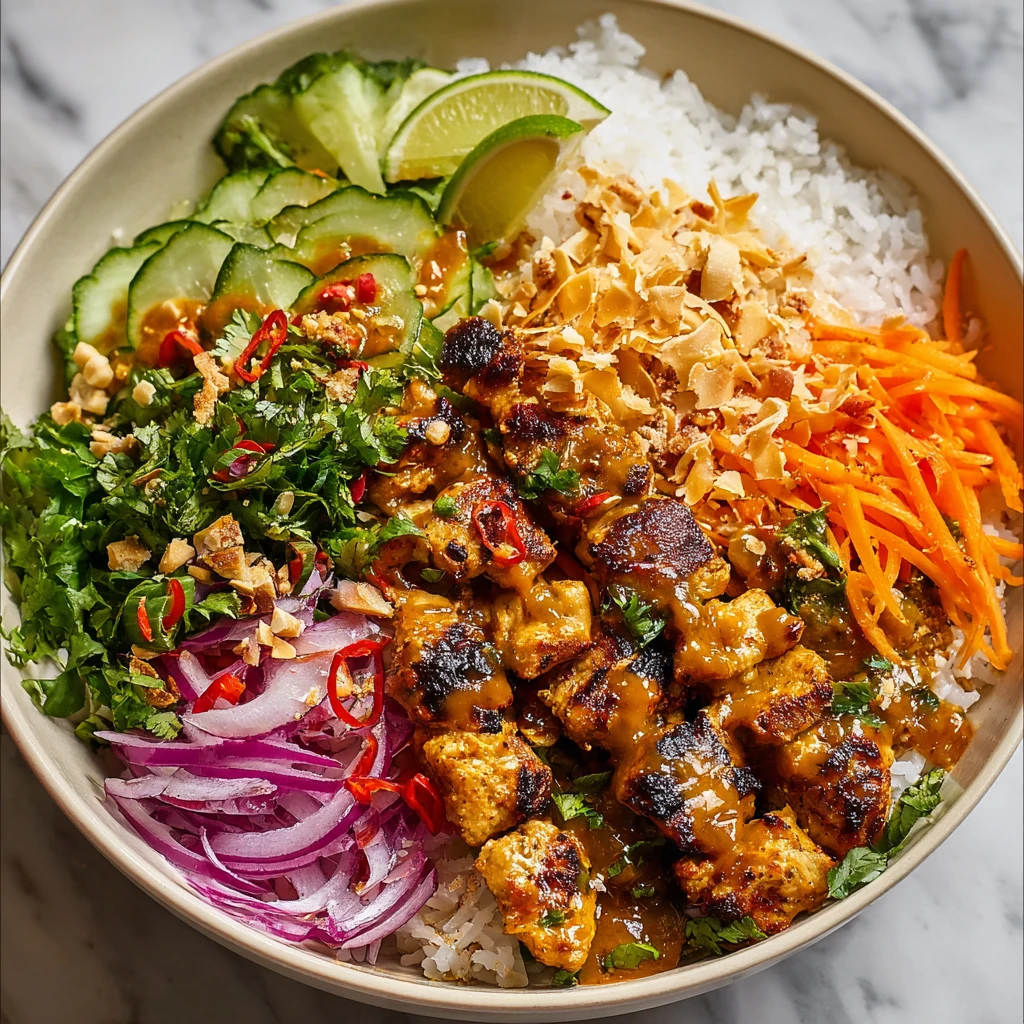 Chicken Satay Salad Bowl recipes bring together bold spices, crisp vegetables, and satisfying protein in one balanced meal that works for busy weeknights or relaxed weekend lunches. This bowl combines tender curry-marinated chicken with fresh garnishes and a light finish that keeps every bite bright and filling. Inspired by classic satay flavors but designed for everyday cooking, this recipe fits naturally into a gluten free lunch routine while staying vibrant and comforting. Whether you enjoy it fresh off the skillet or packed for later, this bowl delivers flavor without heaviness and keeps prep straightforward.