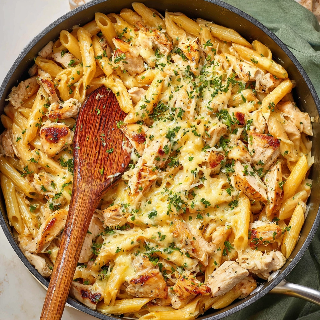 Avoid cooking the chicken completely before adding the pasta, since it will continue cooking while the penne simmers. Stir occasionally so the pasta does not stick to the bottom of the pot. Keep an eye on the liquid level, adding a small splash of broth if needed to maintain a creamy texture.