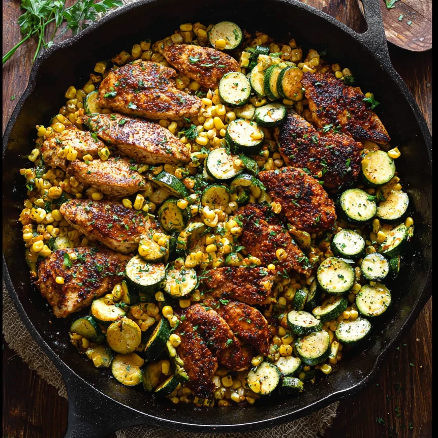 Serve this dish straight from the skillet for a casual family-style dinner. It pairs well with rice, quinoa, or crusty bread to soak up the garlic butter sauce. This recipe also works beautifully as a one pan meal on its own, since the vegetables and protein cook together. It fits easily into a 30 minute dinner plan and works well as a skillet meal for busy evenings. Fans of Chicken with zucchini and corn and chicken combinations will enjoy the balance of flavors and textures.