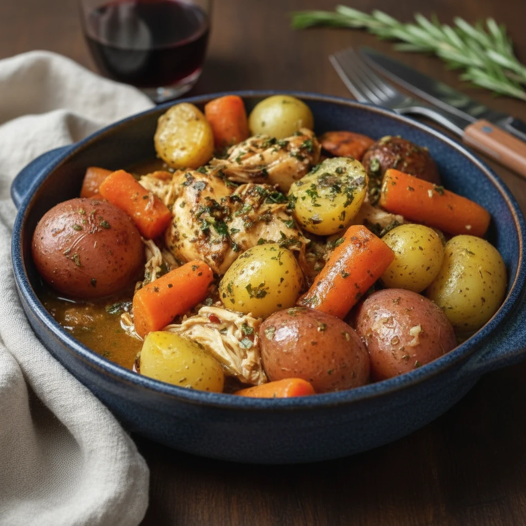 This easy family dinner is pure comfort food magic—juicy chicken, buttery potatoes, and tender carrots all slow-cooked to perfection.
