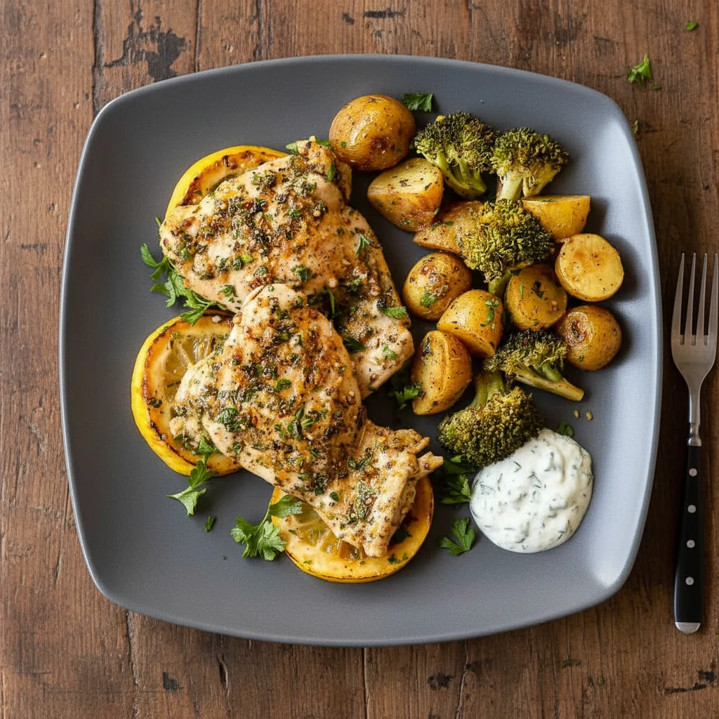 Lemon Garlic Chicken delivers bold citrus flavor, tender roasted meat, and vibrant vegetables in one effortless pan. If you need a dependable weeknight dinner that tastes fresh yet feels comforting, this recipe checks every box. The bright lemon, savory garlic, and warm herbs soak into juicy chicken thighs, while baby potatoes turn golden and broccoli stays crisp-tender. Because everything cooks together, cleanup stays simple. Whether you serve it straight from the oven or drizzle it with a creamy yogurt herb sauce, this Lemon Garlic Chicken transforms basic ingredients into a balanced, flavor-packed meal your family will request again and again.