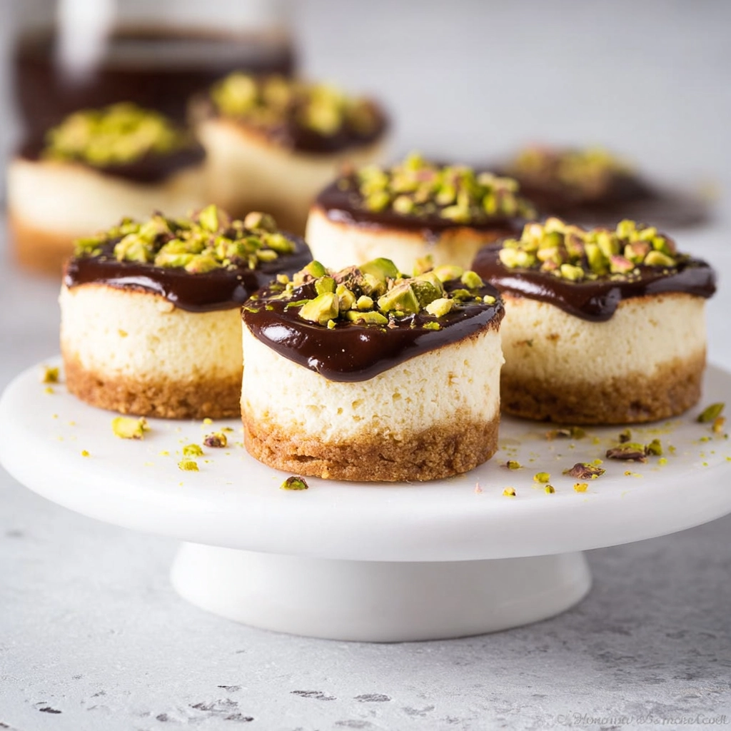 A dark chocolate ganache topping makes these pistachio coffee mini cheesecakes irresistibly rich. The smooth, glossy finish not only adds contrast but enhances flavor complexity. It’s that luxurious layer that turns a simple dessert into something restaurant-worthy.
