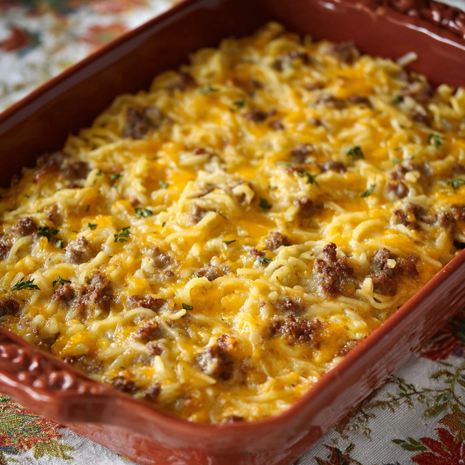 Sausage Hash Brown Casserole is a hearty, easy breakfast bake made with sausage, hash browns, eggs, and cheese. Perfect for busy mornings or feeding a crowd.