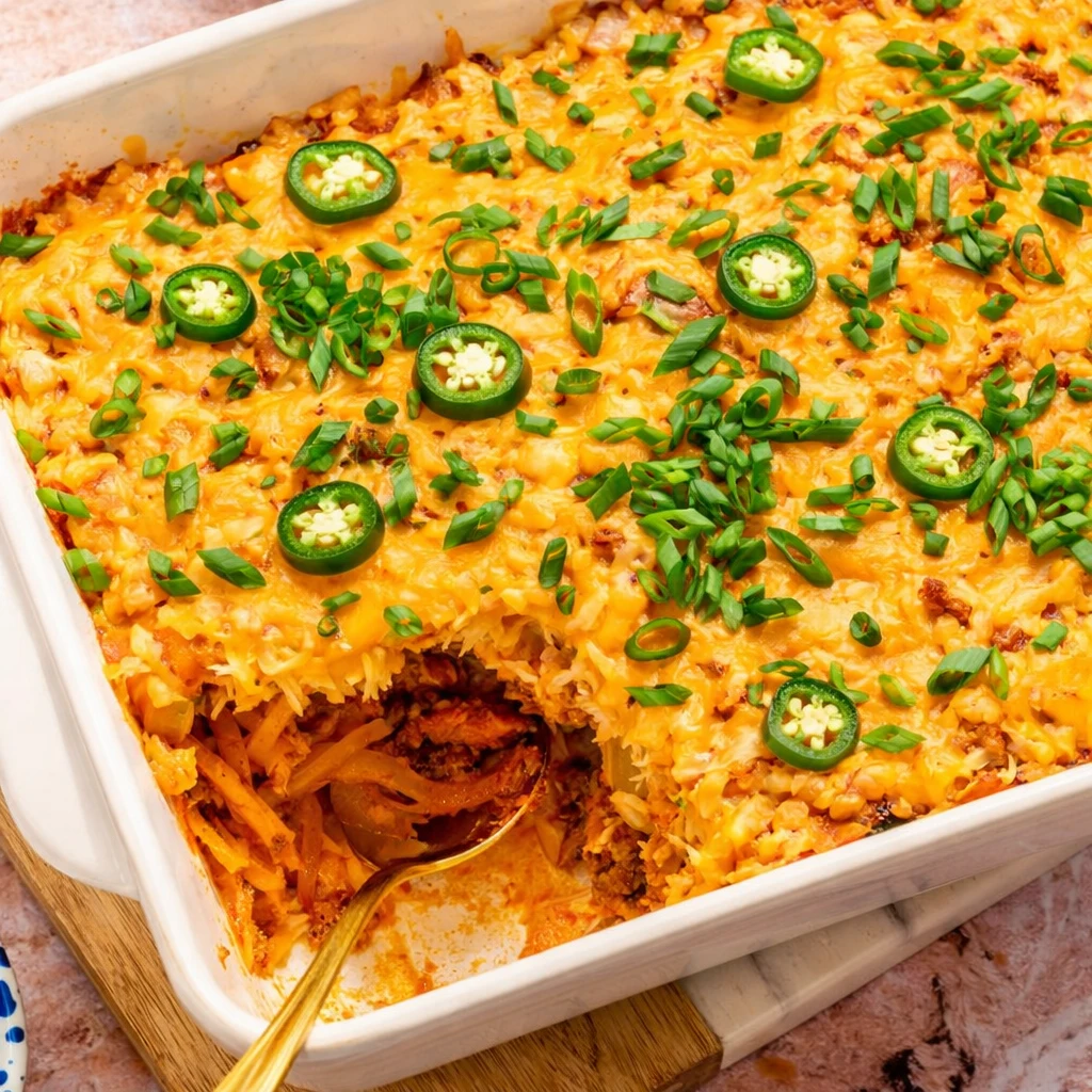 Shipwreck Casserole proves that simple ingredients can create a deeply satisfying meal. With crispy hash browns, seasoned ground beef, vibrant vegetables, and melted cheese, this updated version honors tradition while delivering bold flavor. Make it once, and it may quickly earn a permanent spot in your dinner rotation.