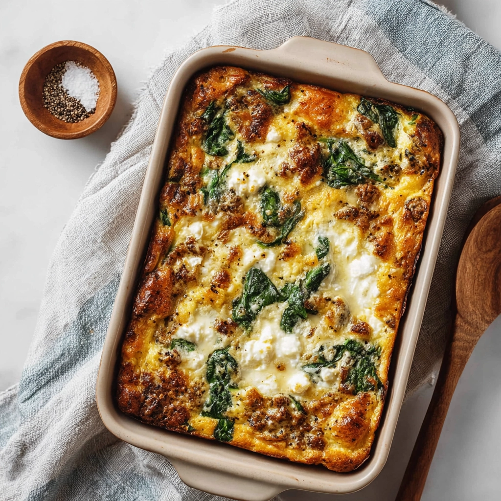 Finally, the spinach comes in at just the right time. Sliding the casserole out of the oven and adding the spinach before the final bake ensures the greens wilt without drying. They keep their bright color and blend into the eggs. This small step helps the casserole feel fresh.