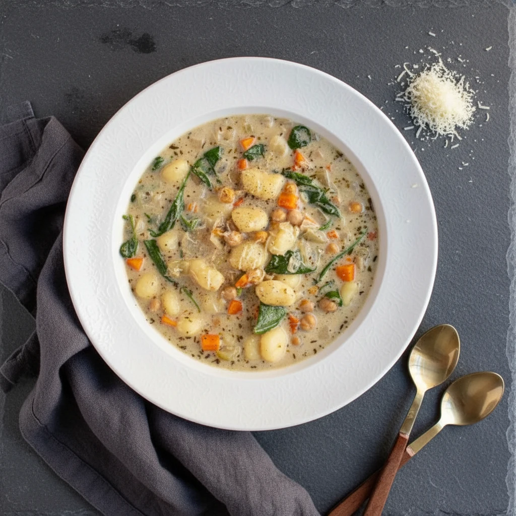 This Vegetarian Gnocchi Soup delivers everything you want in a cozy bowl of comfort. With pillowy potato dumplings, tender vegetables, and a rich creamy broth, it comes together in just 35 minutes. Whether you’re cooking for a busy weeknight or craving something warm and satisfying, this soup checks every box. The combination of chickpeas, Parmesan, and fresh spinach creates layers of flavor and texture that feel hearty yet balanced. If you love a classic Gnocchi Soup but want a meatless option, this recipe will quickly become a favorite.